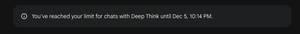 Estoy bastante decepcionado con deep think. Simplemente no piensa lo suficiente, y las ejecuciones son poco fiables. Además, que te limiten la tasa en un plan de IA de $250/mes de Google me parece increíble. ¿Tienes ~5 ejecuciones al día?