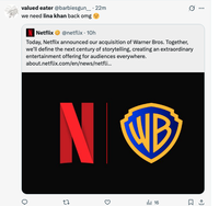 Lina Khan es tendencia en Twitter y solo hay gente diciendo algo como "Lina Khan nunca permitiría que este acuerdo con Netflix sucediera" o "Sálvanos, Lina Khan"