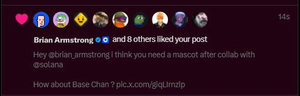 NO ME LO @brian_armstrong HECHO SOLO DARLE LIKE A NUESTRO TUIT EL CEO DE COINBASE, MÁS ALTO PARA $BASECHAN 2bUYrED7TbkVy6V6R9dZVrUaXATbzez3mkdVNiqhpump