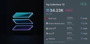 En los últimos 7 días, los NFT de Solana generaron 34K $SOL (6,37 millones de dólares) en volumen de operaciones. Es una locura pensar que solíamos ver que las acuñaciones de NFT alcanzaban más de 30,000 SOL en volumen en unas pocas horas en el pasado.