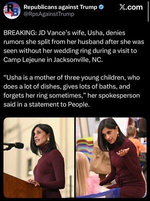 "Ella frega muchos platos, así que a veces se olvida del anillo" es una causa salvaje: