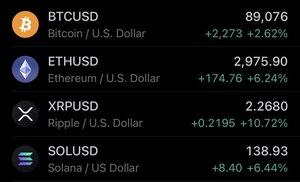 ÚLTIMA HORA: Bitcoin extiende ganancias y supera los 89.000 dólares, el Ether sube más del +6% y está previsto que supere los 3.000 dólares.