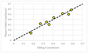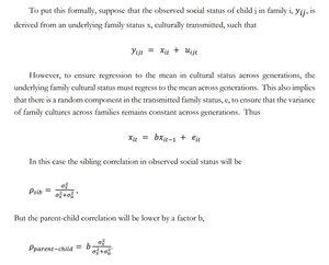 De hecho, para que una teoría cultural recapitule la regresión a la media entre generaciones, ¡estas cosas tendrían que ser diferentes!
