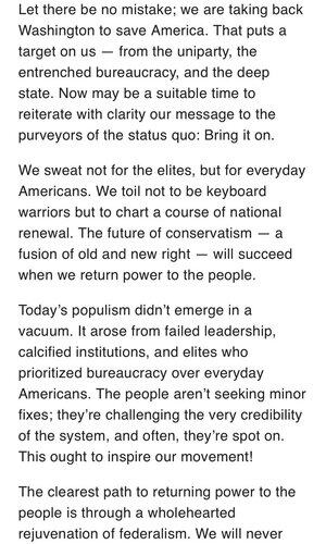 "El futuro del conservadurismo — la vieja y la nueva derecha — tendrá éxito cuando devuelvamos el poder al pueblo."