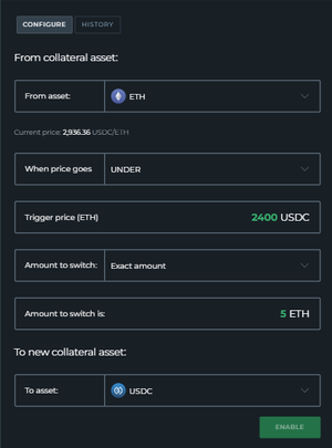 -Puedes configurar disparadores de precio para intercambiar tu garantía parcial o totalmente, y puedes configurar varias automatizaciones a la vez.