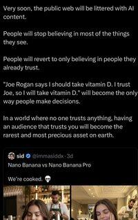 Los datos históricos y las suposiciones asociadas disminuyen igual de bien Todas las inferencias parasociales son irrelevantes cuando la psicología retrocede. ya más allá de la velocidad de escape en cada aceleración vertical separada Los pilares que sustentan la conexión y coordinación humana sobre las que se sostiene Internet actual, de los que la mayoría de las proposiciones son consecuencia, se fragmentan La tecnología es solo un conducto. La capa parasocial se descompone, la capa humana vive [ ]