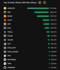 🚨 $USELESS (@theuselesscoin) supera las entradas de ballenas en las últimas 24 horas según Sunflow
