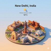 Presenta una escena de dibujos animados en miniatura 3D isométrica y vista desde arriba a 45° de [CITY], mostrando sus monumentos y elementos arquitectónicos más icónicos. Utiliza texturas suaves y refinadas con materiales PBR realistas y una iluminación y sombras suaves y realistas. Integra las condiciones meteorológicas actuales directamente en el entorno urbano para crear un ambiente atmosférico inmersivo.
