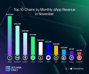 Solana dApps superó a todos los L1 y L2 en ingresos mensuales, ampliando su fuerte ventaja en beneficios de dApp durante todo noviembre. ⚡️