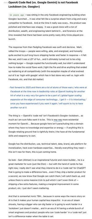 OpenAI Code Red (frente a Google Gemini) no es un bloqueo de Facebook (frente a Google+)