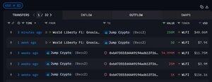 La dirección multifirma del equipo del proyecto WLFI transfirió 250 millones de tokens de $WLFI valorados en 40,06 millones de dólares a Jump Crypro hace 2 minutos