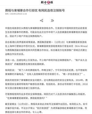 La cooperación de Ctrip con Camboya ha generado preocupación. Algunos internautas cancelaron sus cuentas de la noche a la mañana.