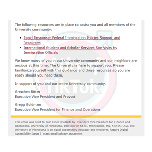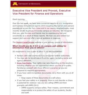 INBOX: Los responsables de la Universidad de Minnesota (@UMNews) están enviando correos electrónicos de "Conoce tus derechos" a los estudiantes, detallando cómo tratar con ICE si aparecen en el campus.
