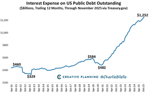 El gasto por intereses sobre la deuda nacional estadounidense aumentó hasta un récord de 1,25 billones de dólares en los últimos 12 meses, más que duplicándose en los últimos 4 años. El Gobierno de EE. UU. ahora gasta más dinero en intereses que en Defensa Nacional.
