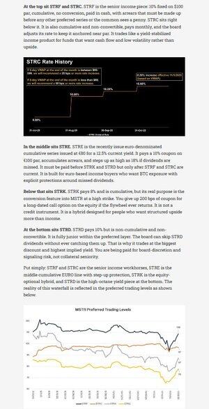 Mutta näet myös vetovoiman henkilölle, joka haluaa käynnistää vauhtipyörän uudelleen. Jos sinun täytyy myydä osakkeita (tai vielä pahempaa, BTC:tä) rahoittaaksesi ostoksesi kokonaan, markkinat laskevat enemmän kuin jos voisit painaa ja myydä STRC:tä ja myydä vain sen verran osakkeita/BTC:tä lyhyen aikavälin korkoa varten.
