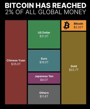 #Bitcoin a atteint 2 % de l'offre monétaire mondiale.
