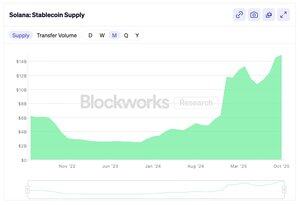 L'offre de stablecoins Solana dépasse 14 milliards de dollars - le graphique est en hausse et à droite.