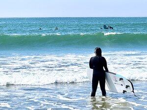 le surf dans le nord de la Californie est l'activité la plus physiquement exigeante que j'aie jamais pratiquée l'eau est si froide que mon énergie s'épuise, les vagues sont difficiles, et c'est le seul endroit sur terre où j'ai vu des gens porter des casques de vélo pour surfer probablement un problème de compétence