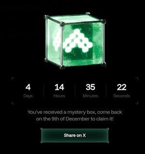 Débloqué une boîte mystère en connectant mon compte x Je pourrai la réclamer le 9 décembre N'oubliez pas de réclamer la vôtre ! Je donnerai les détails dans les commentaires.