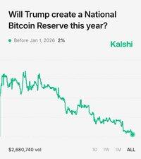 DERNIÈRE NOUVELLE : 🇺🇸 Les chances que le Président Trump crée une Réserve Nationale de $BTC cette année tombent à 2 %, selon les traders sur Kalshi.