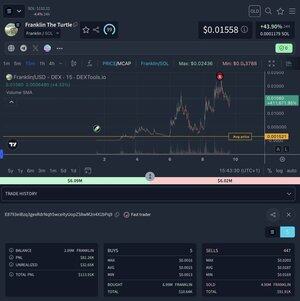 👨🏽💻 Un trader a transformé 10,6K $ en 113K $ sur $Franklin The Turtle (@FranklineOnSol). Il a acheté 6,99 millions de tokens au début, vendu 4,90 millions pour 91K $, et détient encore 2,09 millions d'une valeur de 32K $ ! 💸