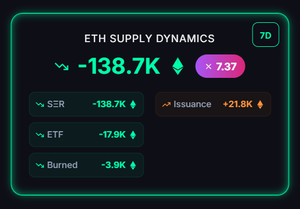 ~7,3 fois plus d'ETH ont été achetés et brûlés que ce qui a été émis au cours de la dernière semaine.