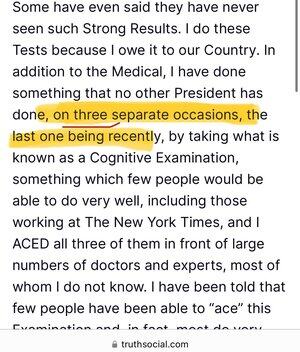 MAIS, maintenant nous savons qu'il a passé 3 de ces tests cognitifs depuis le début de l'année selon ses propres dires !