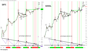 #Bitcoin menggemakan GOOGL pra-blow-off '07: Bollinger Bandwidth squeeze yang sama, ritme Elliott Wave yang sama.