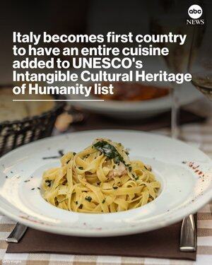 Italia mengangkat gelas dan mengucapkan "hormat" setelah menjadi negara pertama yang memiliki seluruh masakan yang ditambahkan ke daftar Warisan Budaya Takbenda Kemanusiaan UNESCO.