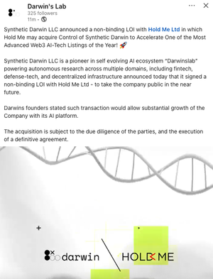 Synthetic Darwin just signed an LOI to go PUBLIC. @solana 's first token aiming at Wall Street.