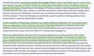 Dalam paragraf berikut, laporan tersebut menyebutkan kemungkinan kebutuhan untuk menciptakan solusi tambahan yang akan meningkatkan privasi di samping kepatuhan.