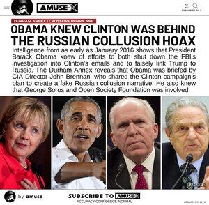 Obama tahu Hillary Clinton, dengan bantuan George Soros, mengarang Hoax Kolusi Rusia dari seluruh kain sebagai hasil dari pengarahannya oleh Direktur CIA John Brennan, meskipun ini dia membiarkannya terjadi - dia terlibat.