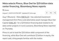 BREAKING: Zucc mengamankan $29 miliar dari kreditur swasta untuk mendanai pusat data META AI