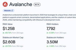 Nilai RWA pada @avax telah melampaui $1 miliar, mencapai total $1,25 miliar di 42 aset, mewakili pangsa pasar 5,7%. Tonggak penting ini datang setelah peningkatan aset $500 juta baru-baru ini melalui @BlackRock