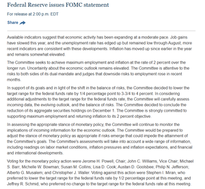 **Fed mengumumkan akan menyimpulkan QT pada 1 Desember**