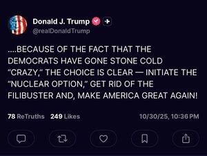 Karena Demokrat MENOLAK untuk mendanai pemerintah, Senat Republik perlu menggunakan opsi nuklir dan mengesampingkan filibuster!!