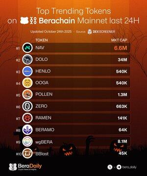 Token Tren Teratas di Berachain Mainnet (24 jam terakhir) 🔥 1️⃣ NAB — Batas: 6.6M — @NAVFinance_ 2️⃣ DOLO — Cap: 34M — @Dolomite_io 3️⃣ HENLO — Batas: 540K — @henlo 4️⃣ OOGA — Batas: 540K — @0xoogabooga 5️⃣ SERBUK SARI — Tutup: 1.3M — @beraborrow 6️⃣ NOL — Batas: 663K — @going_2_zero 7️⃣ RAMEN — Batas: 141K — @ramen_finance 8️⃣ BERAMO — Cap: 64K — @Beramonium 9️⃣ wgBERA — Batas: 8.1M — @SmileeFinance 🔟 BBlast — Cap: 45K — @Blastbera Mana yang Anda lacak hari ini? 🐻⛓ #Berachain #Mainnet #Crypto