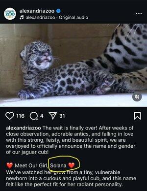 1. Saya suka narasinya, anak jaguar di kebun binatang ini hanya bernama "Solana" (berbicara sendiri)