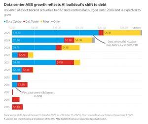Sekuritisasi infra AI tumbuh lebih cepat daripada AI > 8x dalam waktu kurang dari 5 tahun > pasar $80 miliar sekarang, $115 miliar diproyeksikan pada akhir 2026 > 64% didukung pusat data CDO tetapi jadikan AI