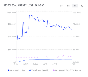 Rata-rata / garis kredit rata-rata masing-masing adalah $133k & $62k. Ini mewakili ~25% dari dukungan kumpulan dalam TVL beta pribadi.