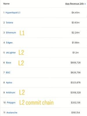 BREAKING : Ekosistem Ethereum menjadi #1 dalam pendapatan aplikasi 24 jam. Wah. Lihat ini. Dari 10 pendapatan aplikasi teratas berdasarkan rantai, 5 berasal dari ekosistem Ethereum! ETH L1 + L2 = 4,75 m$/hari. Ini adalah #1 dalam metrik ini. Hyperliquid juga menggunakan jembatan arbitrum. Setelah Fusaka, L2 akan membakar $eth !! Ethereum L1+L2 mengambil alih dunia keuangan. Efek jaringan akan segera muncul. Koin L2 premium akan segera dimulai ketika pasar menyadari bahwa hanya L2 yang akan bertahan dan eth L1 akan menjadi lapisan penyelesaian. Jika Anda seorang pembangun, cukup terapkan aplikasi yang sama di setiap ekosistem Ethereum. Sekarang itu parit. Koin L2 bullish. Ethereum bullish. Tickernya adalah ETH.