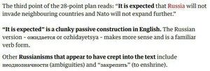 Dalam 'rencana perdamaian' Amerika, beberapa kata-kata ditemukan yang awalnya ditulis dalam bahasa Rusia, The Guardian melaporkan.