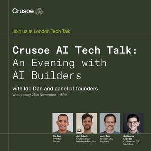 🇬🇧 Bergabunglah dengan Crusoe di London pada hari Rabu, 26 November, pukul 5 sore untuk panel pendiri AI dengan CTO @StackOneHQ @GuillaumeLebed1, CEO @inephany @johnptorr & @reimaginerobots Jon Scholz, yang dimoderatori oleh VP R&D @DecartAI.