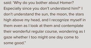 Suatu kali seseorang menantang Goethe mengapa dia repot-repot membaca Homer karena dia tidak memahaminya. Ini adalah balasan brilian dari Goethe: