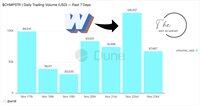 Penurunan tidak mengguncang siapa pun dan lonjakannya tidak acak, mereka sejajar hampir sempurna dengan jam yang paling banyak diperdagangkan oleh NFT Chimpers. Bagan Dune menunjukkan bahwa jendela tersibuk untuk Chimpers adalah UTC sore hingga sore hari dan saat itulah hari volume $CHMPSTR terbesar juga mendarat.