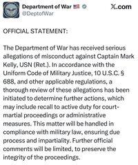 Pentagon mengatakan sedang menyelidiki "tuduhan pelanggaran serius" terhadap Senator Mark Kelly (D-AZ)