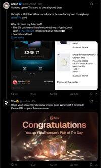 sekali lagi, kampanye berlangsung hingga 15 Desember, jadi masih jauh untuk setiap enjooiers Tria. yang harus Anda lakukan adalah membeli item dengan kartu Tria dan men-tweet dengan tagar TriaTreasure.