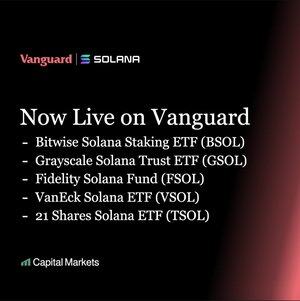 Vanguard telah menambahkan sederet produk Solana ETF ke platformnya, termasuk dana dari @BitwiseInvest, @Grayscale, @Fidelity, @vaneck_us dan @21shares_us