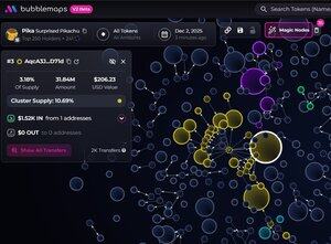 $pika (CA HpG64UxQ1127KLgK1actpkF4gFziWNP3pCYzKtDPpump) dibundel dengan dompet yang didanai Bybit, memiliki 30% dari total pasokan menurut peta CEX.
