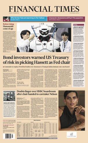 Baru saja diterbitkan: halaman depan Financial Times, edisi Inggris, Kamis 4 Desember